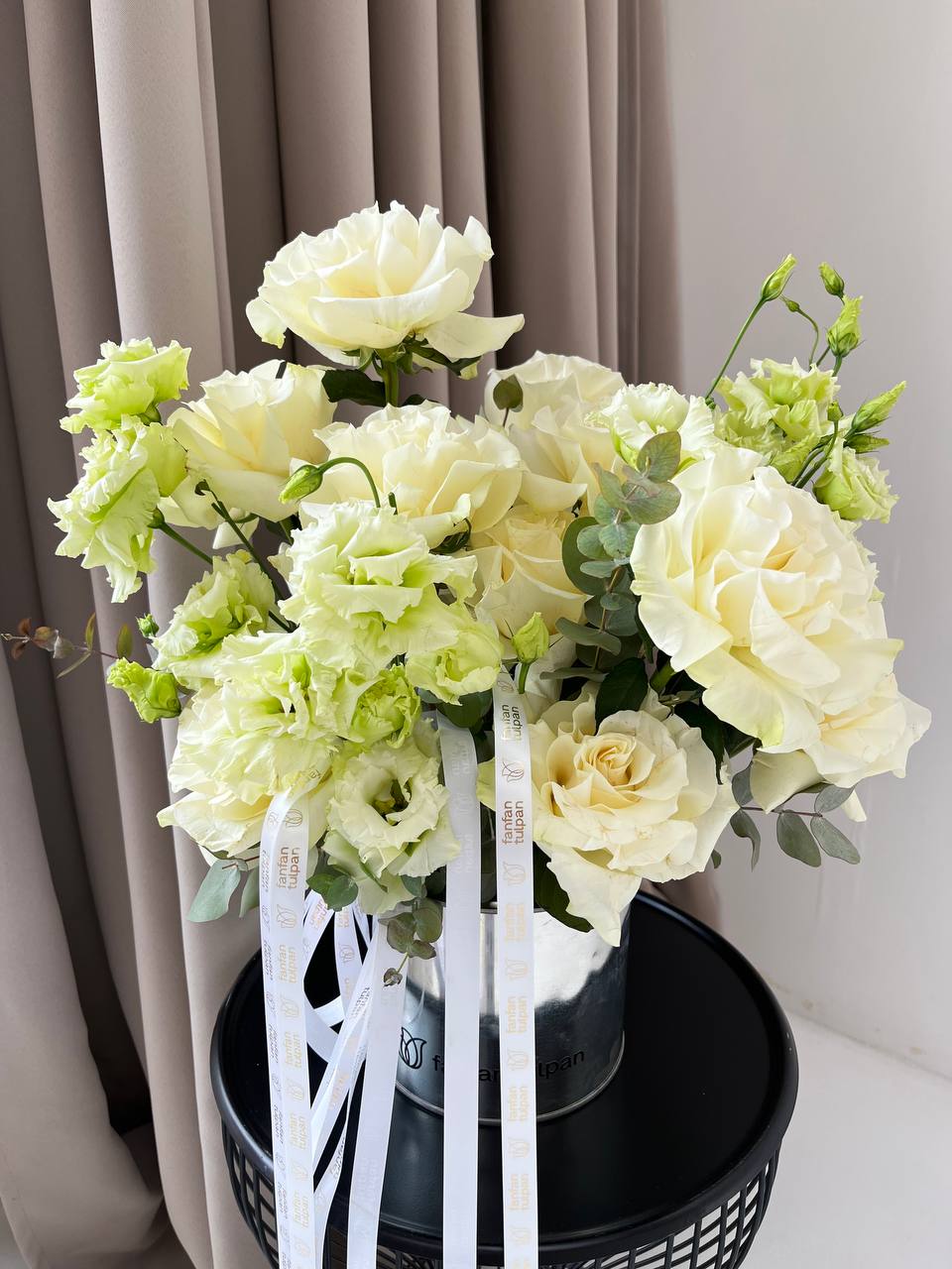 Данная цветочная композиция под запрос. Это значит что возможно у нас отсутствует какой-либо цветок в составе букета. Но мы готовы собрать похожую композицию, не чуть не менее красивую чем эта. Вы можете оставить заявку. И мы свяжемся с вами и предложим возможные варианты.