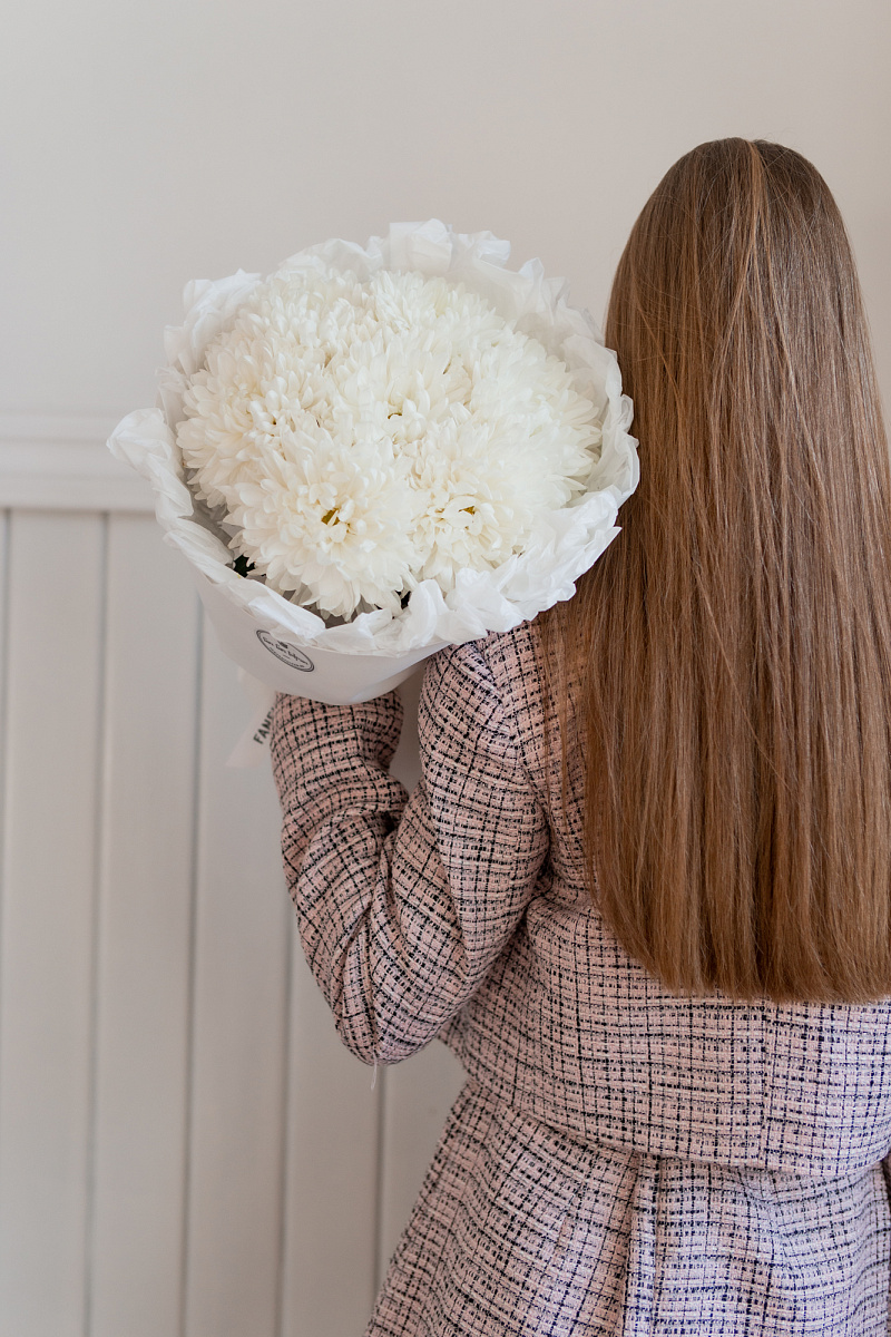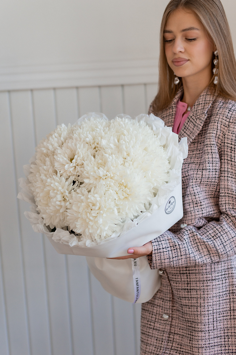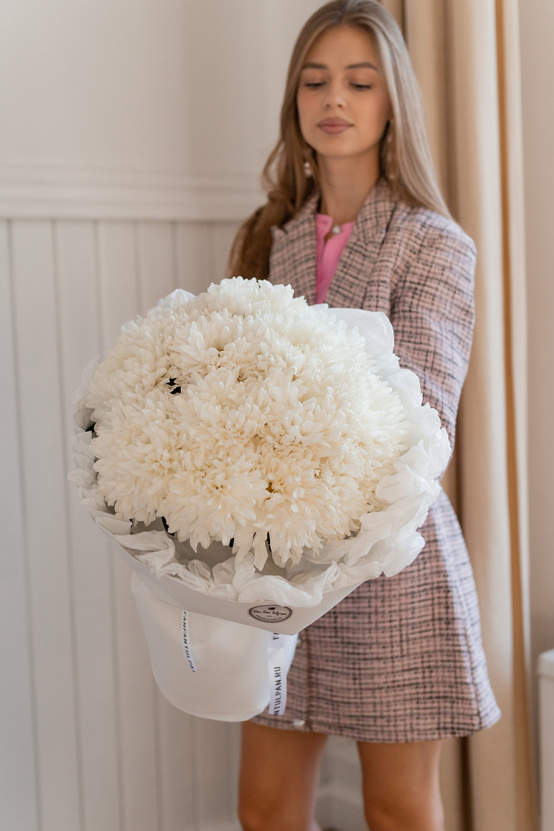 Этот букет хризантем подарит незабываемые эмоции и создаст атмосферу уюта и радости. Он станет идеальным подарком для тех, кто ценит простую, но в тоже время восхитительную и красивую красоту цветов. Хризантемы также символизируют вечность и долговечность, что делает их особенно значимыми при оформлении различных событий.