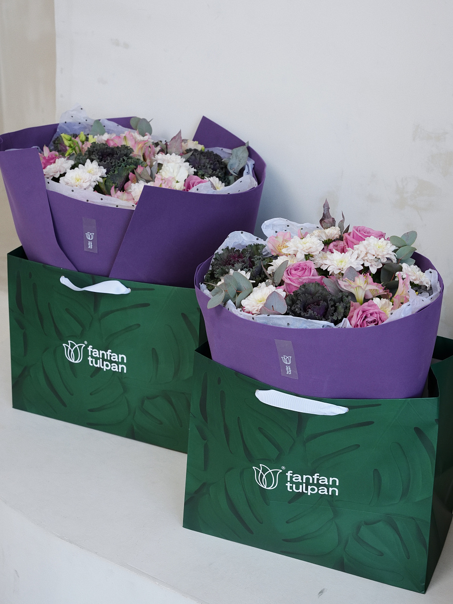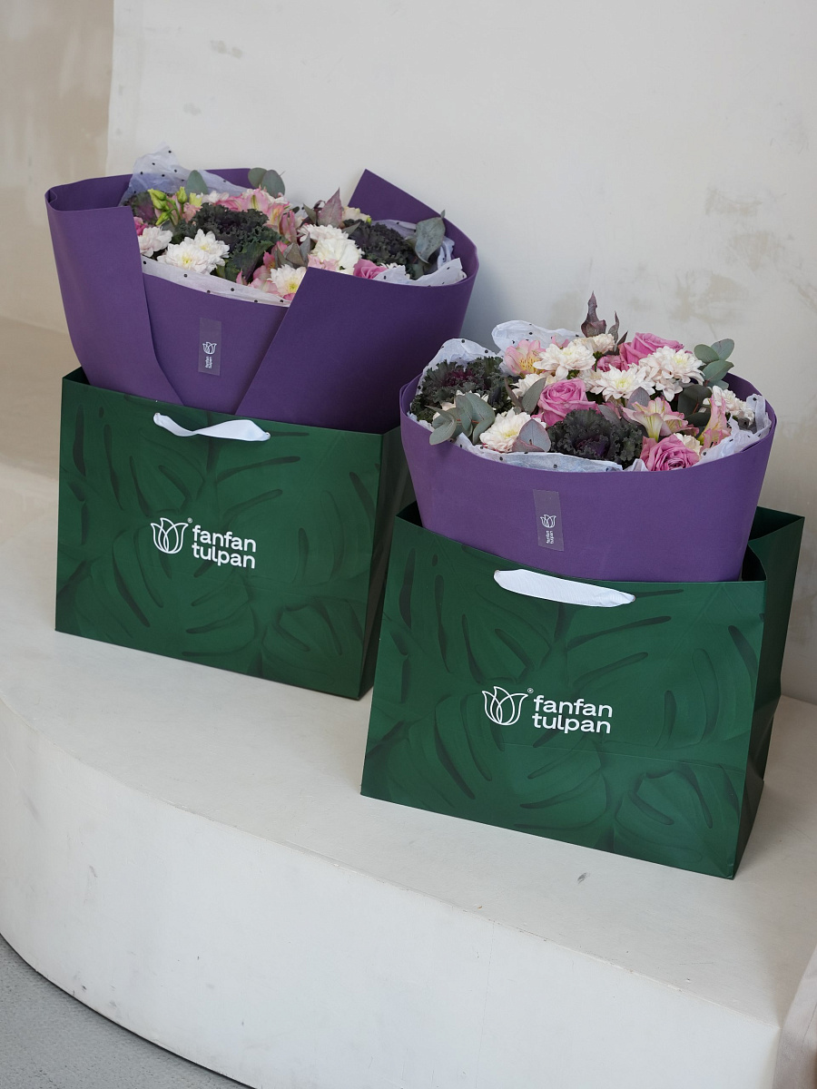 *Букеты размера M и L доставляются в Аквабоксе и Трансопортировочной коробке - Трапеции