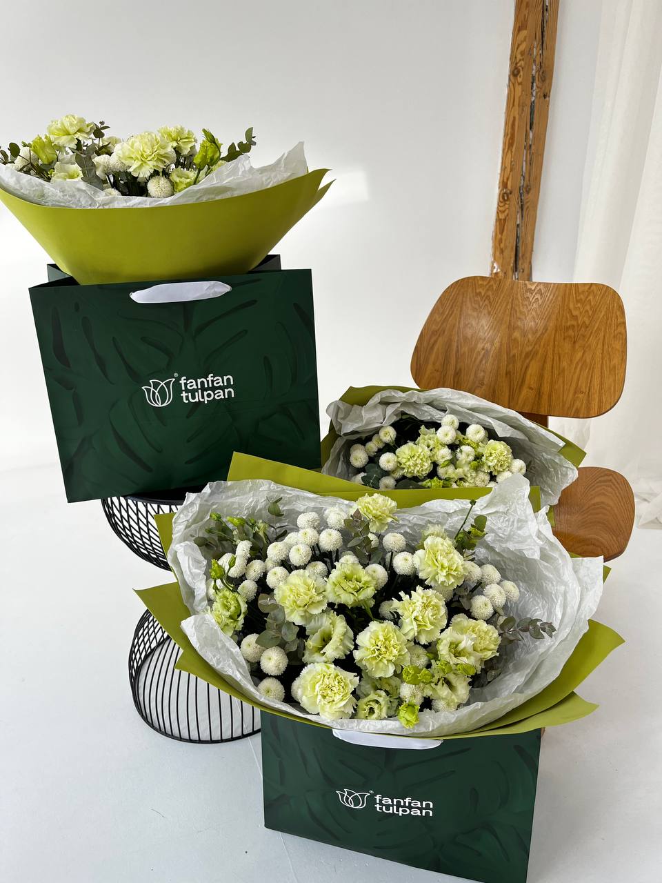 Букет с зелеными гвоздиками — это уникальное сочетание природы и элегантности. Зеленые гвоздики привлекают внимание своим необычным цветом, вызывая ассоциации с весной, свежестью и обновлением. Они выглядят оригинально и современно, гармонично вписываясь в любые интерьеры и стиль оформления. Такие цветы подойдут для тех, кто ценит индивидуальность и стремится выделяться среди толпы.