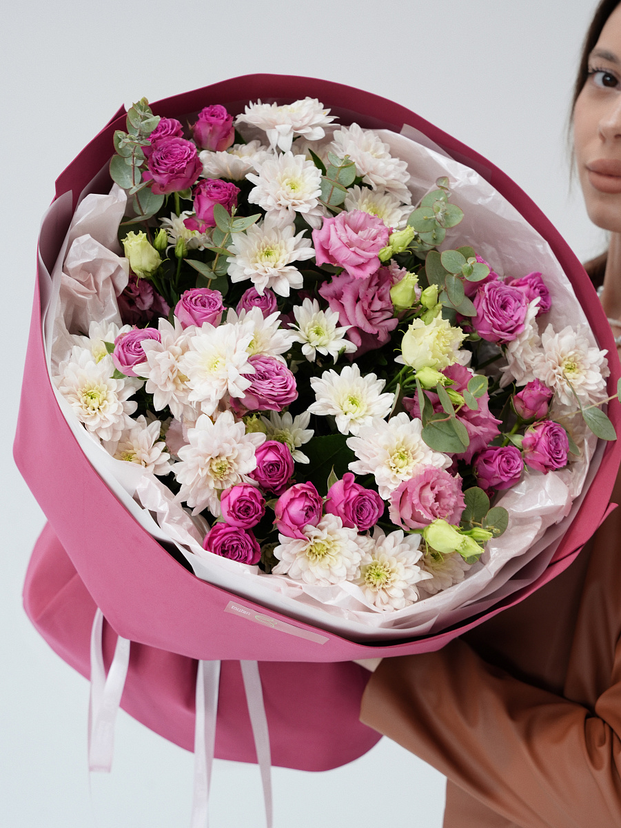 Роза кустовая ,Хризантема кустовая ,Эустома ,Эвкалипт
